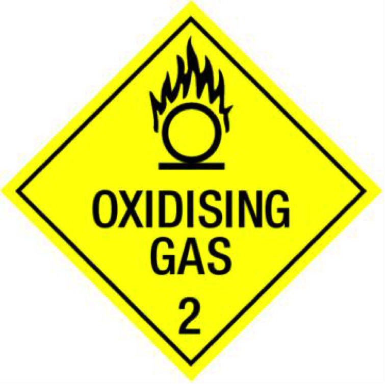 According to the code [5.2.2.1.5.1] there is no need for both ‘2.2: Non-flammable, non-toxic gas & 5.1: Oxidizing substances placards’. Instead ‘a yellow “OXIDISING GAS” label (model No. 2.5) may be used In lieu of Division 2.2 plus Subsidiary risk 5.1 labels’. The appropriate placard is shown, below.