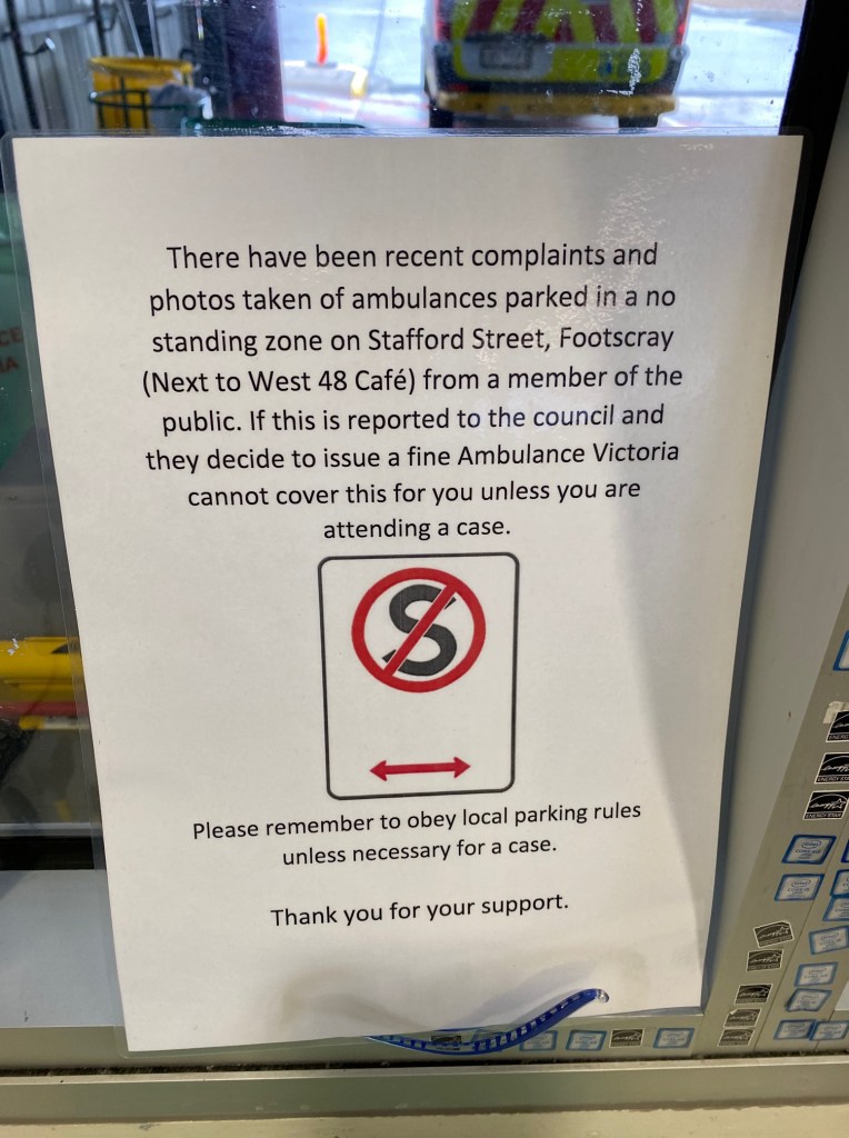 Today’s question relates to a notice posted by Ambulance Victoria that you can see here: