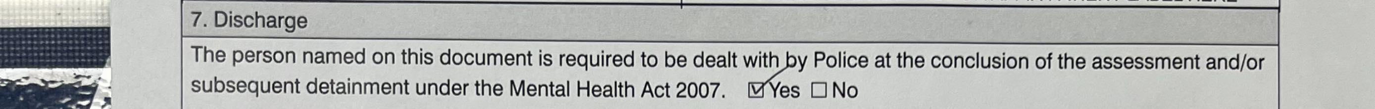 A person may be having a mental health crisis and be observed by a doctor, an ambulance officer, or a police officer. A doctor may elect to write a certificate whilst an ambulance or police officer may elect to transport the person to a declared mental health facility. Where a doctor has written a certificate, they may endorse the certificate to the effect that police assistance is required (s 19(3)). Ambulance officers may also request police assistance (s 20(2)). Where a doctor or an ambulance officer has requested police assistance, that assistance must be provided (s 21).