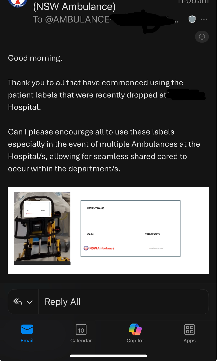 … a paramedic working in NSW and received this email (attached to the email) from a manager. My question is regarding patient privacy in the context of privacy laws in NSW. Does this sign hung on ambulance stretchers violate privacy?