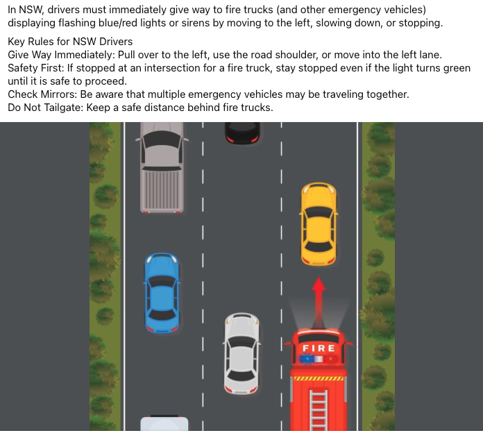 What I find interesting is that the advice – pull over to the left and stop – used to be the law (and was when I learned to drive). The Road Traffic Regulations 1935 (NSW) r 80 said (emphasis added):